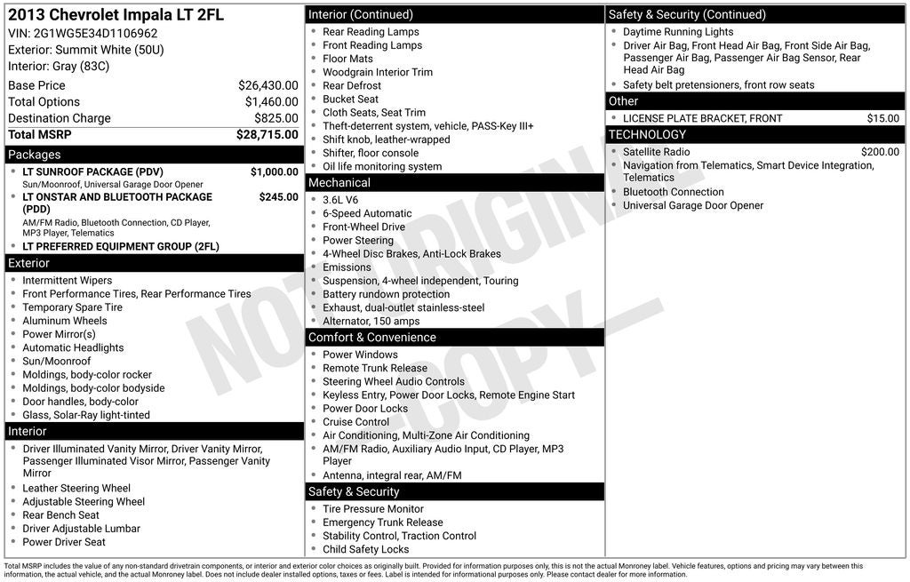 - Vehicle Name: Chevrolet Impala