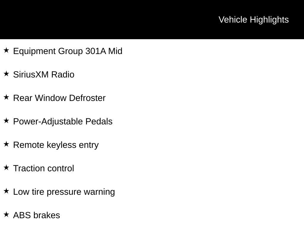 - 4-Wheel Disc Brakes w/4-Wheel ABS, Front And Rear Vented Discs, Brake Assist, Hill Hold Control and Electric Parking Brake