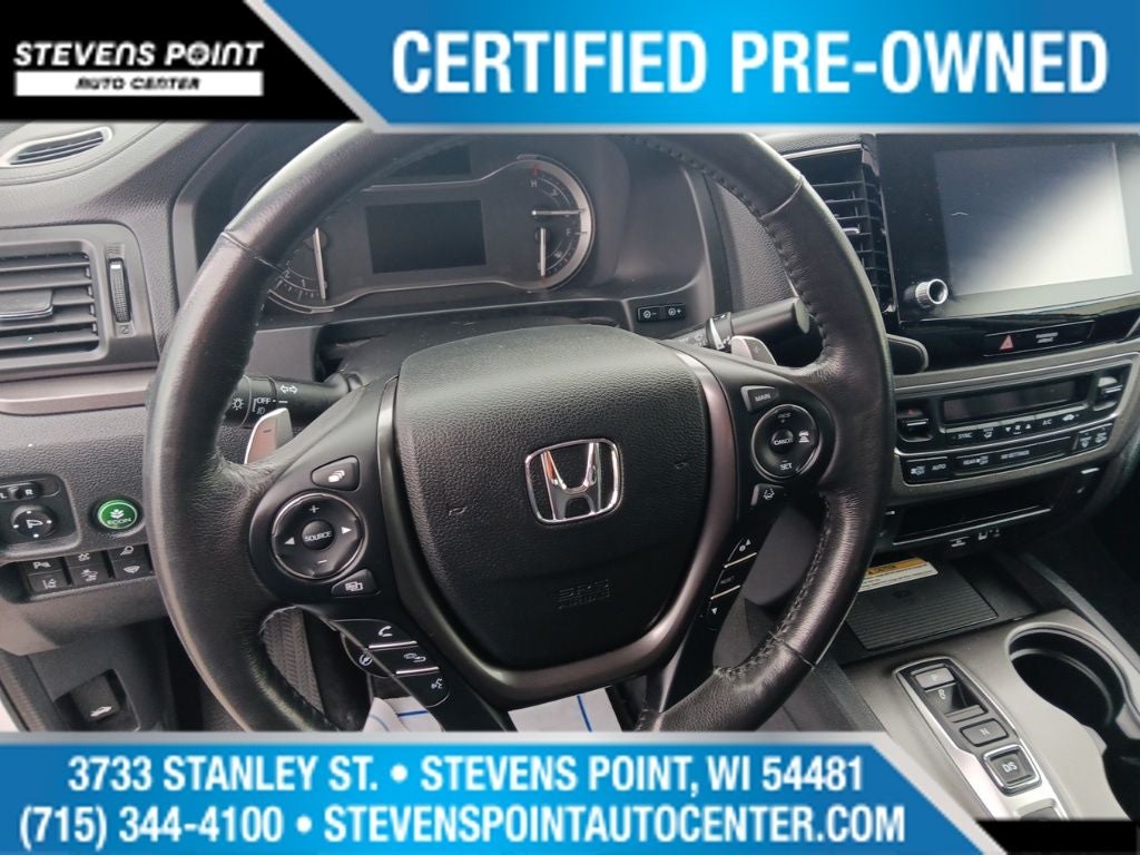 - Radio: 540-Watt Premium Audio System w/8 Speakers -inc: subwoofer, Bluetooth streaming audio, MP3/auxiliary input jack, Radio Data System (RDS), Speed-Sensitive Volume Compensation (SVC), 8" display audio w/high-resolution electrostatic touch screen and customizable feature settings, Apple CarPlay integration, Android Auto integration, HondaLink, SMS text message function, 1.5-amp USB smartphone/audio interface in front console (1 port), 2.5-amp USB charging port in center console (1 port), HD Radio, truck-bed audio system and wireless phone charger