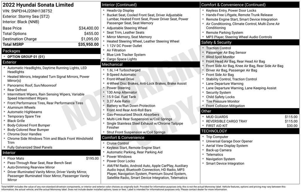 - Vehicle Name: Hyundai Sonata