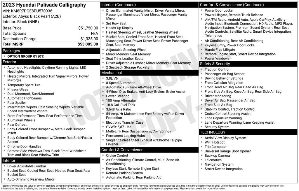 Abyss Black Pearl 2023 Hyundai Palisade Calligraphy 4D Sport Utility AWD 8-Speed Automatic with SHIFTRONIC V6