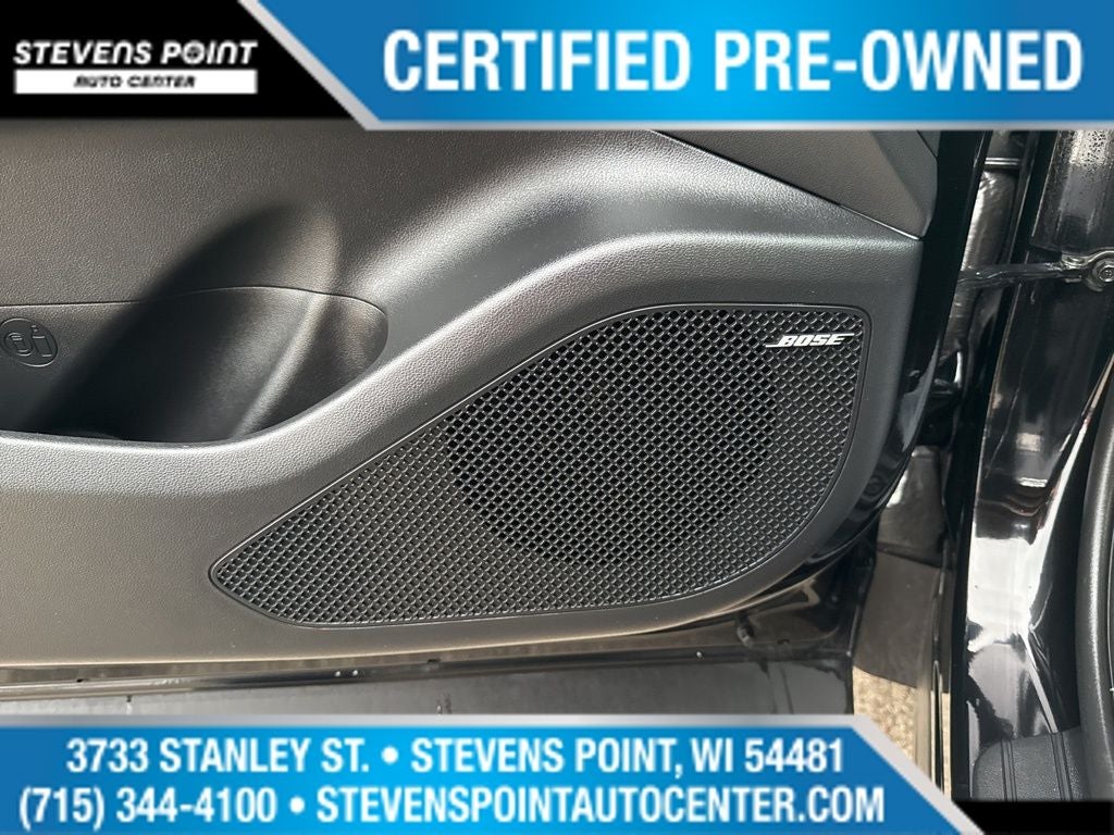 - Radio: Bose Premium w/AM/FM/HD/SiriusXM Audio System -inc: 10.25" color touchscreen w/onboard navigation and traffic flow including incident data via HD Radio (HERE) (AVN 5.0), 8 speakers (1 twiddler on center of instrument panel, 2 tweeters, 2 front door, 2 rear door, 1 woofer on rear quarter panel), digital 8 channel amp w/custom equalization, digital signal processing and dynamic speed compensation, Bluelink connected car system, Bluetooth w/voice recognition, wired Apple CarPlay and Android Auto and USB connectivity