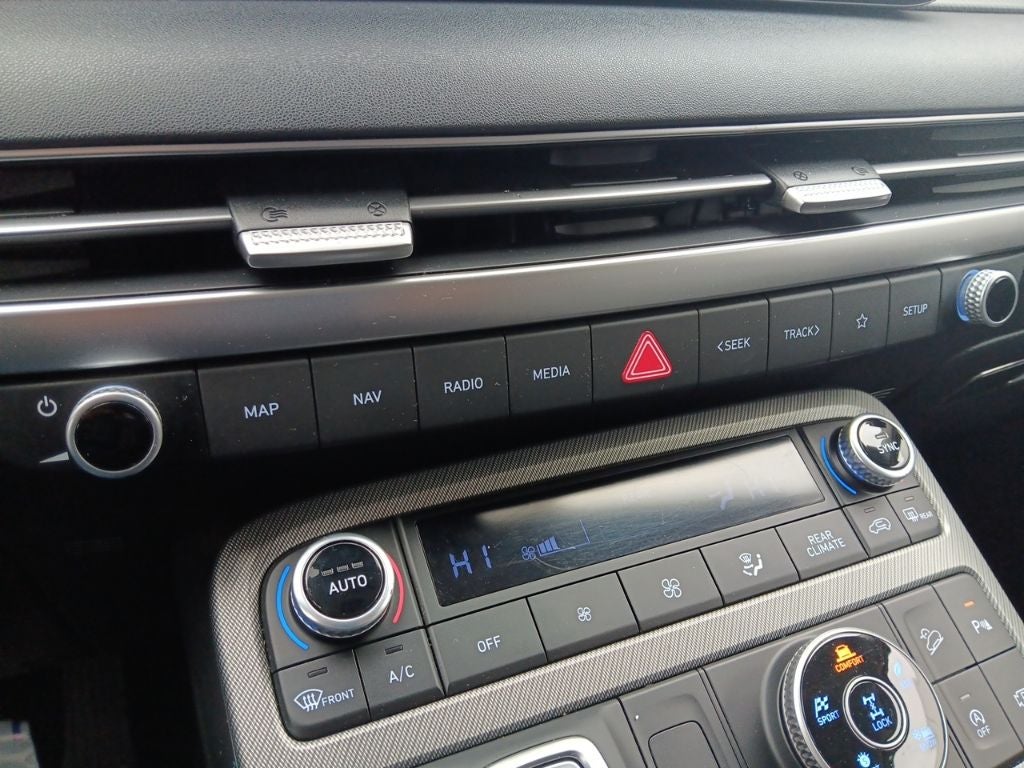 - Radio: AM/FM/MP3 Audio System -inc: 12.3" color touchscreen display, onboard navigation w/traffic flow including incident data via HD Radio (HERE), Over-the-Air (OTA) map updates, SiriusXM, USB, Android Auto and Apple CarPlay, dynamic voice recognition, rear seat quiet mode, Bluetooth hands-free connectivity w/multiple device connection and Bluelink Connected Car System